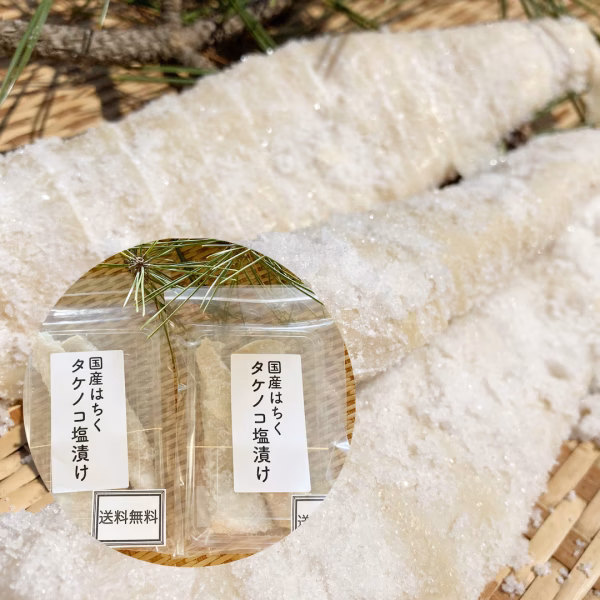 - 名称 :塩漬けタケノコ 原材料名:淡竹(栃木産)、塩、米糠 賞味期限:2024.5.31 保存方法:冷蔵庫で保存 製造者: 石塚高男 青森県つがる市富萢町難波30番1