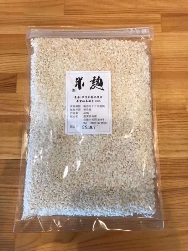 - 米麹 品名 米麹 原材料名 米(福岡県産) 内容量 500g 賞味期限 製造から3週間 保存方法 要冷蔵 10℃以下 製造者 農業福島園 福島光志 福岡県宗像市光岡408-1 TEL0940-36-1958