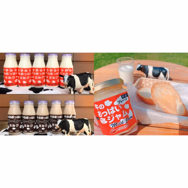 - 牛のおっぱいミルク 200ml×5本、コーヒーミルク200㎖×5本、ミルクジャム140g×1個 冷蔵で10℃以下で保存(ミルクジャムは未開封は常温) 賞味期限 ミルク8日、コーヒー9日.ジャム約180日