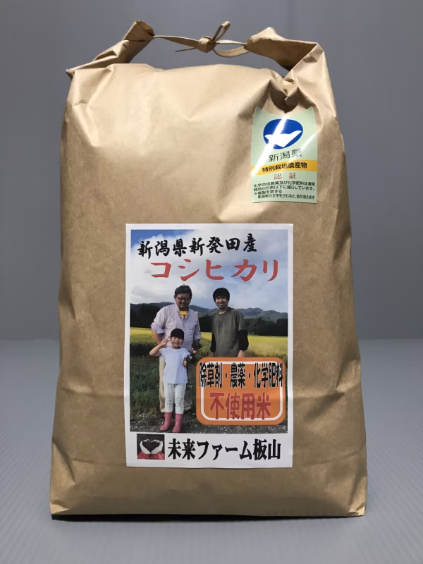 新潟県新発田(しばた)市のコシヒカリです。 二王子岳の雪解け水が流れ込む環境の中で育ったお米です。 5年前に米作りを始めてから、農薬・除草剤・化学肥料を一切使っていない田んぼで育てました! 等級検査では、毎年一等米の評価をいただいております! 毎日食べるものだから、安心・安全で体に良いものをみなさまに食べていただきたいと思っております。 冷めても美味しく、お弁当のおにぎりにも最適!!