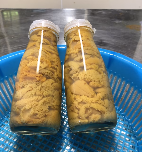 豊かな海藻資源に恵まれた田野畑村で獲れたウニはその品質も非常に高いことで知られています。瓶詰めにすることで、ウニの鮮度や風味を保ち保存が可能となっています。ミョウバン等の添加物は一切使用していないためウニ本来の旨み甘みを味わって頂けます。海や天候の条件によって出漁する日が限定的で希少価値が高く、味とともに食感も絶品です。