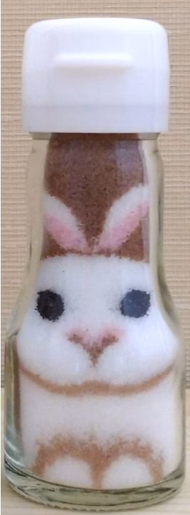 国内産海塩とレッドカラント等で1本、1本手作りのウサギ(今年の干支)モチーフのソルトアートです。世界で唯一のソルトアートです。