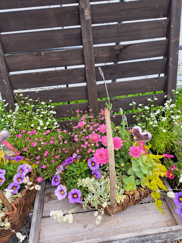 • プレゼントに!花籠バスケット寄せ植えMサイズお任せ寄せ植え