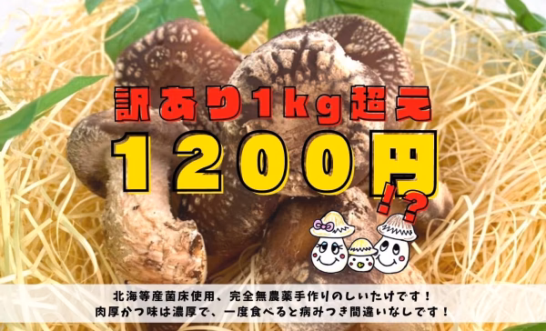 【期間限定20%オフ】訳ありしいたけ1Kg超!!形は変でも味は最高品質です!