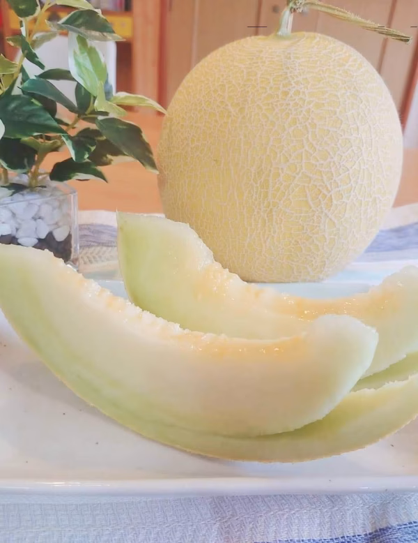 美味しいメロンを追求する中でキミカに出会いました。去年、90株だけ試験栽培をしてポケマルに出品させていただいたところ、そのインパクトと優しい味わいで、とても喜んでいただけた品種です。