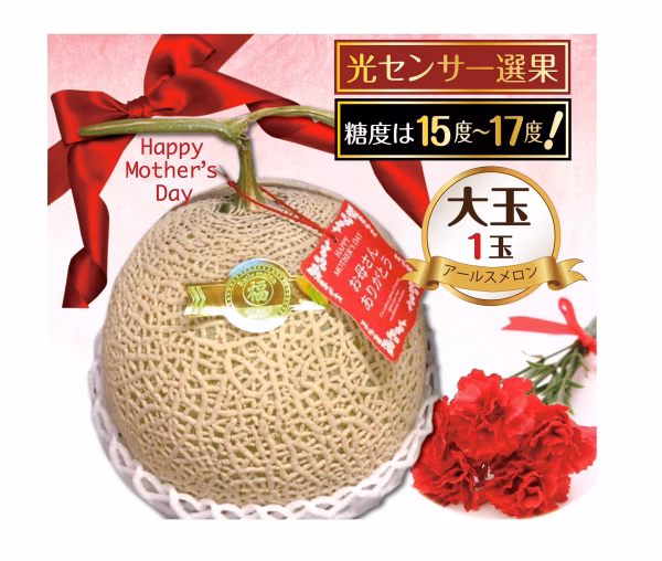 糖度15度以上、1玉2キロ前後を1玉、カーネーション(造花)付"母の日ネックレス付で用意しました。「数量限定」