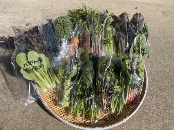 ・葉物野菜は鮮度保持袋を利用して、その他野菜(芋類、キャベツ、ハクサイ)は新聞紙で包装をしてプラゴミ削減します。