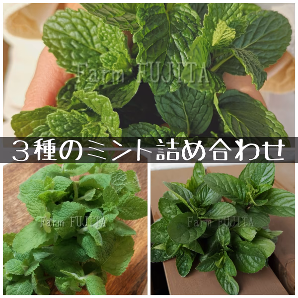 3種のミントをお試しいただけます(*^^*) それぞれ同量ほどずつ、あわせて各ご購入量になりますようお詰めします。 ※お好みの割合に変更の場合は、申し送り事項欄にご記入ください。 ハーブティー、モヒート、ミントジュレップ、ミントソース、ハーブウォーター、サラダなど、使いやすい大きめの葉を発送します。 先端の芽を含んだ2~3節ほどを収穫します。 お店で飲んだモヒートを…と再現しようと思っている方 ↓ モヒートミントかスペアミント、どちらが使われていたのかわからない… ↓ モヒートミントとスペアミントをお試しいただけます!(^^) お好きな割合でブレンドして、ハーブティーもお試しいただけます!(^^) 当農園のハーブは、すべて発送日の朝に収穫して、ボードン袋に入れ発送しています。 まだ幼い自分の子供が、鼻を近付け、小さな手で触っても安心なハーブを育てたいと思っています。 そのために、よほど虫害を受けたり問題が出ない限り農薬は使わないようにし、必要なときも天然成分のものやJAS認定のものを使っています。 ハーブをいつものお料理、いつもの生活に少し足すだけで、少し笑顔が増えますように!(*^^*) 【お気軽にメッセージください(*^^*)】 ・お受け取り日のご希望 ・他のハーブの詰め合わせ、同梱 ・数種類詰め合わせ出品分の割合量の変更 ・出品していない設定量への変更など ※暑い時期は、クール便での配送のみとなります。 ※内容量にあわせて、クロネコヤマト宅急便各サイズにて発送させていただきます。