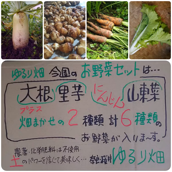 11/17(金)~11/23(木)ゆるり畑の週替り野菜セットは、メイン野菜4種類とサブ野菜2種類!