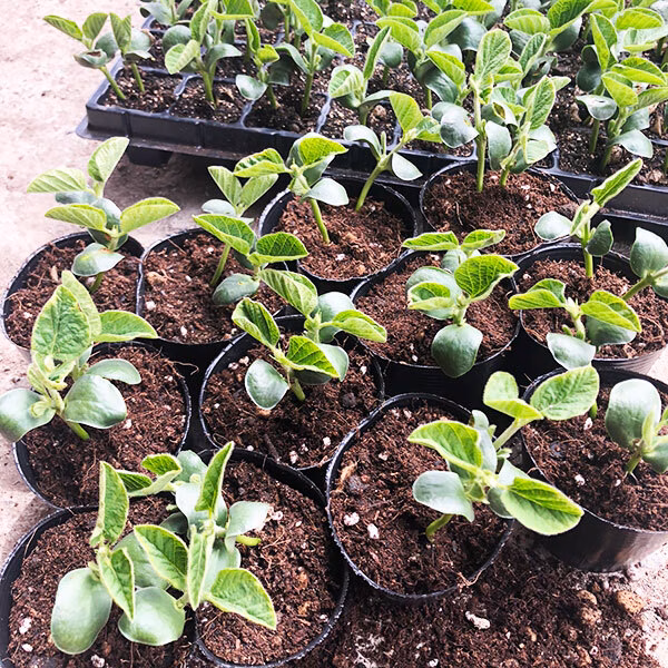 今年は枝豆の苗も販売させていただきます、7.5cmのポリ鉢に2本仕立ての苗になります。