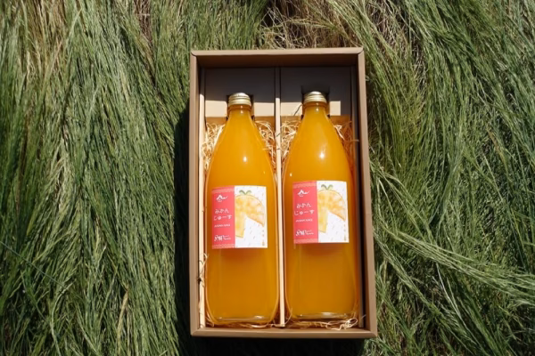 当園自信の無添加・果汁100%みかんジュース(1ℓ)の2本入りセット。