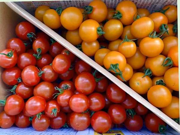 一般的なミニトマトとは違い、輝くようなオレンジ色をしているのが特徴です。