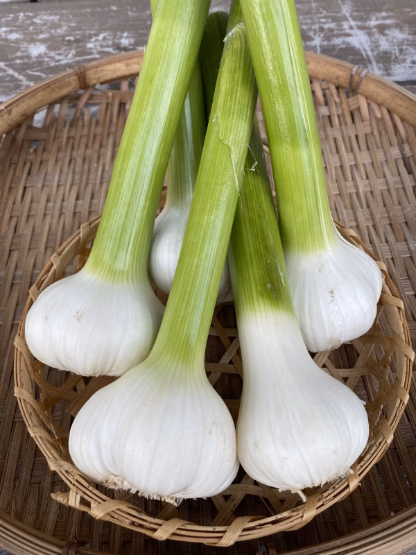 新にんにくの醤油漬け、オリーブオイル漬け、炊き込みご飯、ホイル焼き、丸揚げ、炒め物などにおすすめです。