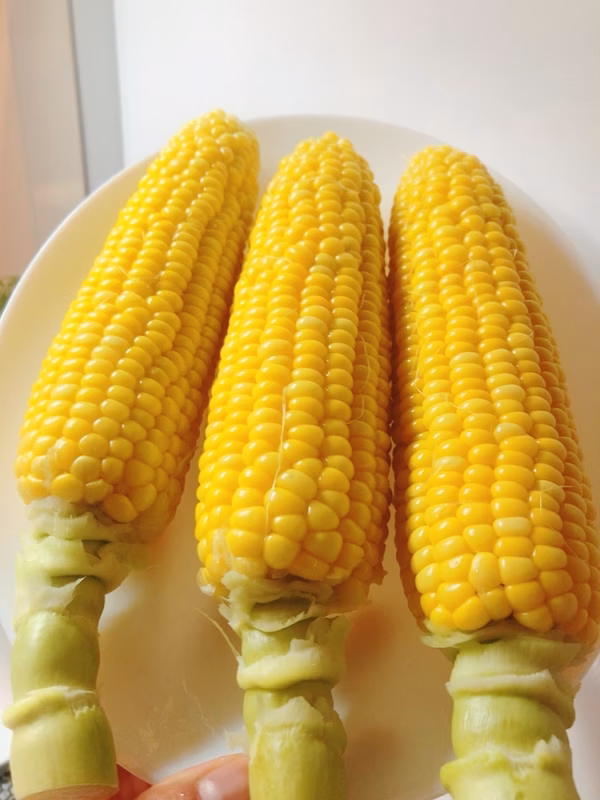 ①トウモロコシが浸かるくらいのお湯を沸かしたら、トウモロコシの皮を剥き、熱湯へ。(特に塩はいりません、茹でるだけでとっても美味しい)