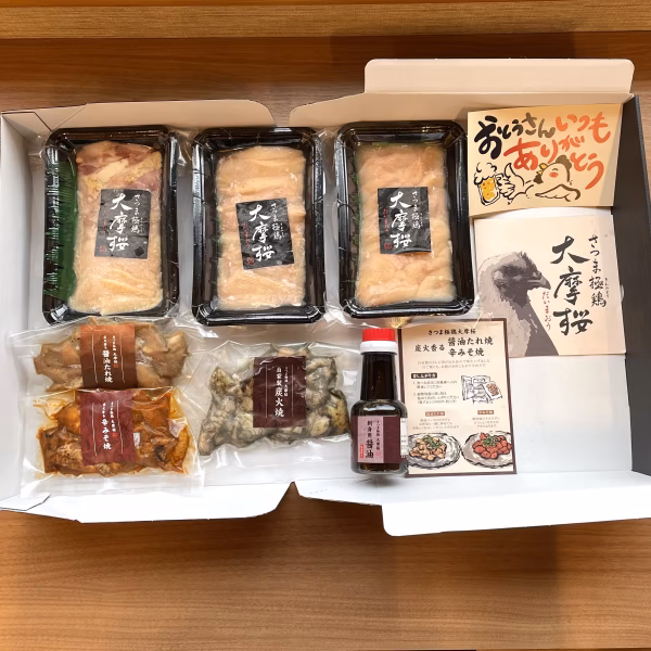 - 〈炭火焼き〉 原材料:鶏肉(鹿児島県産)・食塩(一部に鶏肉を含む) 〈辛みそ焼き〉 原材料名:鶏肉(鹿児島県産)、たれ、(醤油、さとう、にんにく、食塩、風味調味料、生姜、でん粉)、ヤンニョンジャン/調味料(アミノ酸等)、着色料(カラメル)、グリシン、PH調整剤、アルコール、(一部に小麦・大豆・鶏肉・ごまを含む) 〈醤油たれ焼き〉 原材料名:鶏肉(鹿児島県産)、たれ(しょうゆ、砂糖、にんにく、食塩、風味調味料、生姜、でん粉)、/調味料(アミノ酸等)、着色料(カラメル)、(一部に小麦・大豆・鶏肉を含む)