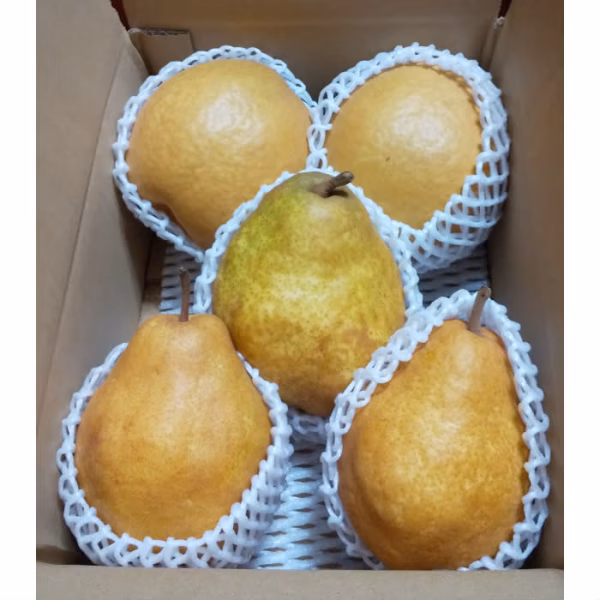 …ラグビーボールのような形が特徴的な王秋は、生産量が少ない希少な品種です。程よい酸味がある上品な味わいで、ジューシーなうえにシャリ感もあります。非常に日持ちのよい梨で(冷暗所で約1カ月)、保存する間に追熟していくので変化する味わいを楽しめます。