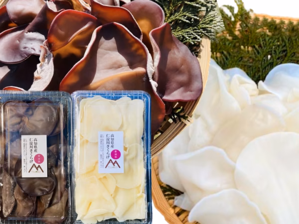 仁淀ブルーという美しい川に流れ込む源流の湧水を使用し、寒暖差の厳しい山の上で育つ「きくらげ」は、肉厚で食感が良く、独特の味わいと、風味を持っています。