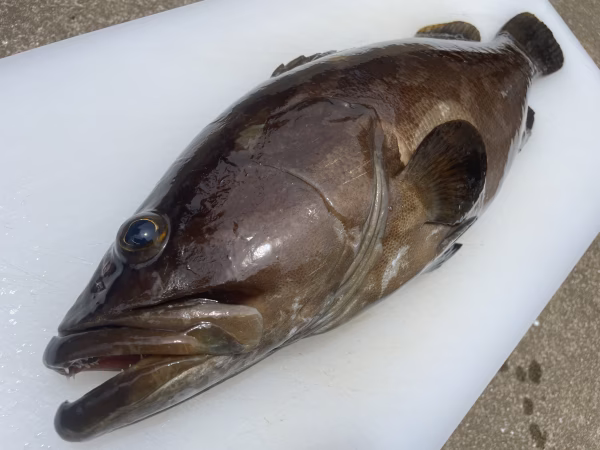 今朝の素潜り漁で海に潜り銛で突いたクエです。