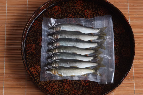 体力が回復した元気な鮎の状態で氷締めし、真空冷凍しました。