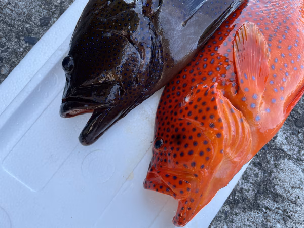 素潜りでの魚突きで捕獲しています。常に頭、エラ付近を狙うように意識していますが、体に撃つ事もあります。