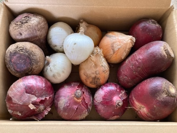 - ビーツと紅くるり大根は冷蔵庫に、玉ねぎは常温にて保存ください。