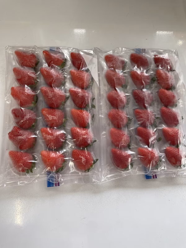 冬眠という瞬間冷凍の機械を使用し、鮮度を保ったまま瞬間冷凍することにより、普通の冷凍いちごとは全く違う最高の食感とそのままの美味しさで食べれます。