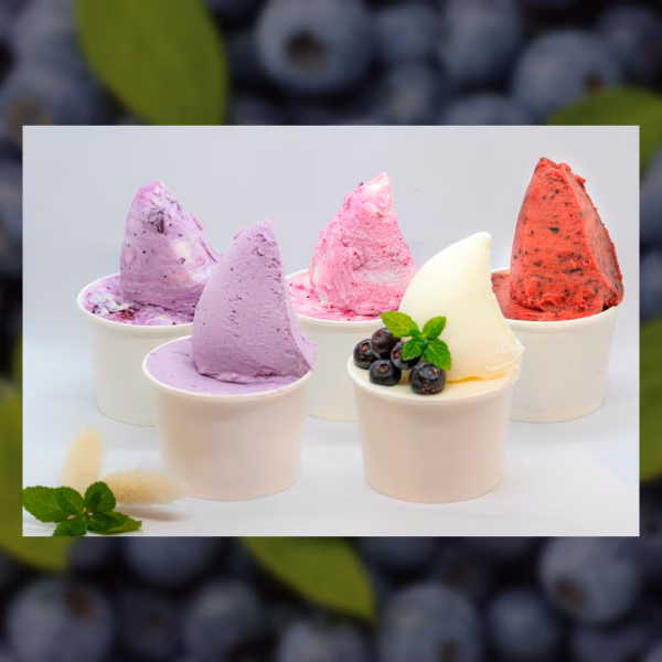 そんな美味しいブルーベリーを収穫後、鮮度のある内(2日以内)に冷凍したものを使い、ブルーベリージェラートに!そしてアイスだけではなく、トッピングで冷凍ブルーベリーも1カップついています。朝食のヨーグルトにトッッピング!というアレンジも出来ますよ!
