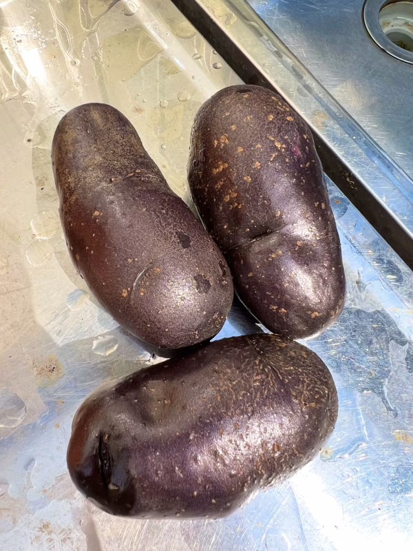▼商品概要 皮も実も青みのある紫色になる。 芽が浅いので皮が剥きやすい。 ▼品種・味の特徴 シャドークィーン サラダや揚げ物に向いている。 スープやスィーツなどにも。 ▼数量、分量の目安 約2kgを80サイズの野菜専用箱に入れます。 ▼栽培/生産方法、こだわり 土作りからこだわり、有機肥料のみ使用。 完全無農薬栽培。 ▼注文に際しての注意点(配送方法や納期指定など) 畑から収穫したままを袋詰めします。 土汚れなど気になる方はご購入をお控えください。