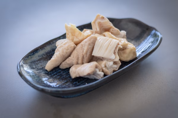 放牧デュロック純粋種「やまの華豚」の珍しいボイルした白モツです。(冷凍)