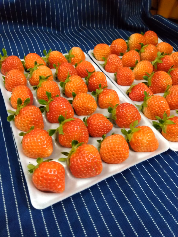 一般的なイチゴが作れない夏秋どりの品種。 イチゴらしい甘酸っぱい香りがあり、この時期に出回るイチゴのなかでも味のバランスがいいです。