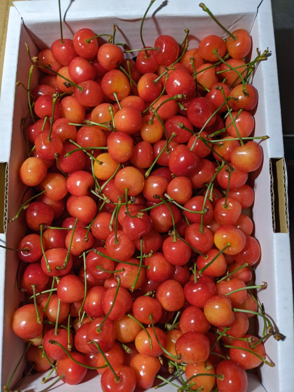 佐藤錦の小さいサイズで少し柔らかくなっています。 家庭用でお召し上がり下さい。