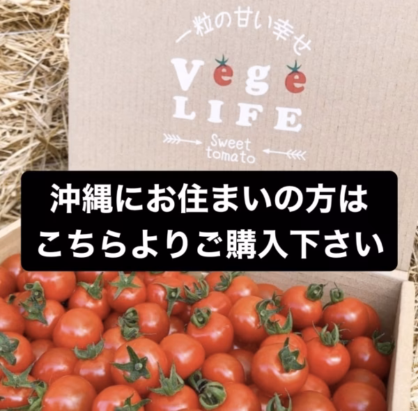 ▼自己紹介 こんにちは。 高糖度ミニトマトを販売するVegeLifeです。 こちらは沖縄県への発送専用ページです。 【甘くて濃厚ミニトマト】です。 ベジライフの濃厚なミニトマトをご賞味 いただけたら幸いです♡ 百貨店にも卸す甘くて濃厚なミニトマトを この機会に是非ご賞味下さい★ 現在の糖度は【10度】 フルーツミニトマトといわれる糖度になりました。 トマトが苦手なお子様〜トマト好きのお客様まで 幅広く愛されるミニトマトとして 日々愛情を込めて育てております。 こだわりは完熟収穫です。 木の上で真っ赤になるまで待って待って待つ‼︎ 大事に育てながら程良いストレスを与えスパルタに育てる事で甘くて濃厚なミニトマトが仕上がりました。 Vege Life ベジライフ 野菜の種類···ミニトマト ▼品種・味の特徴・食べ方 どこか懐かしいと言われるVegeLifeのミニトマト。 甘味と酸味のバランスをお楽しみいただけると幸いです。 ▼数量、分量の目安 1kg箱、2kg箱、3kg箱 ▼栽培/生産方法、こだわり 土耕栽培 こだわり抜いた微生物を動かす土づくりで 愛情を持って厳しく育てたミニトマトを 是非一度ご賞味下さい。