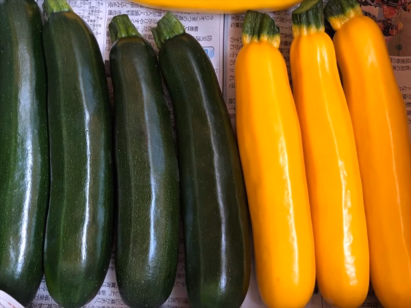 黄色のズッキーニ、品種はゼルダ・ジャッロです。
