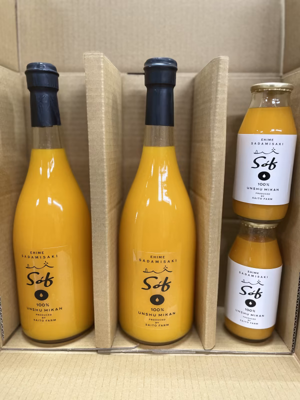 Sof(Saito Orange Farm )が育てた愛媛県八幡浜市産の温州みかん(南柑20号)を厳選した小玉みかんのみ充填したみかんジュースは、濃厚なみかん本来の風味と旨味を味わって頂けます。