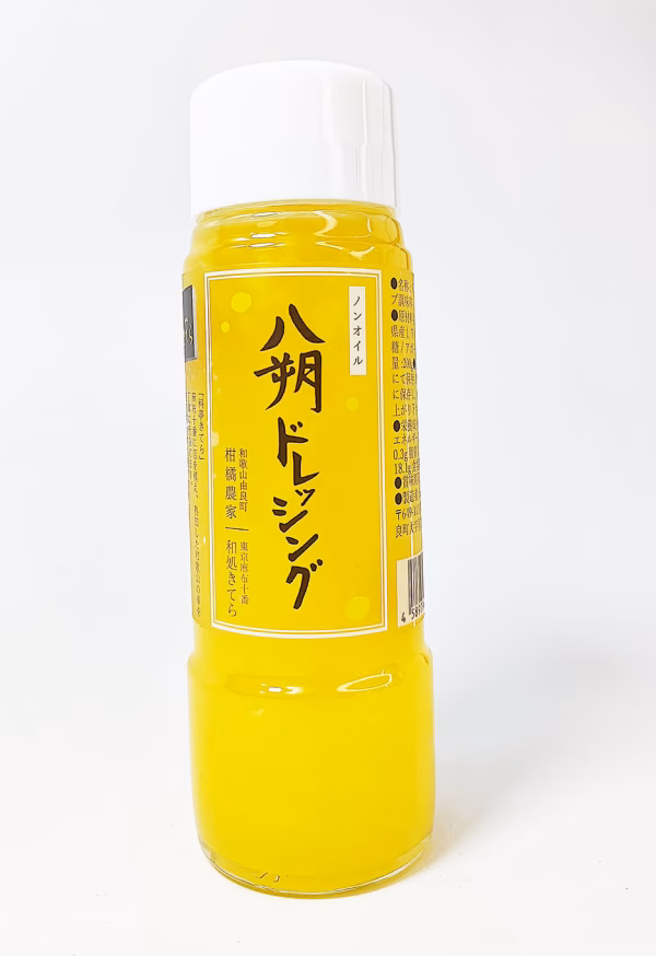 firm&labが育てた「旬の素材」 つぶつぶが見た目も味も引き立ちます。 柑橘の「和」の味覚をご賞味下さい。 【原材料名】八朔(由良産)、ワインビネガー、砂糖、寒天 *由良の八朔つぶつぶがそのまま入っています *つぶつぶがいつでも全体に満遍なく配分されるよう配合されています。 料理例 サラダ、マリネ、海産物に良く合います。 さっぱりした味わいです。 ----------------------------------- 「なんにでも合う由良らしいドレッシングを作って欲しい」 (BY佐々木正剛) そんな無体な要求から話は始まりました。 由良といえば何か、他地域と違ったもの、由良らしいもの 私達firm&labとして 一番は柑橘です。 中でも「ゆら早生」は当然なのですが、 どこに出しても恥ずかしくない柑橘「由良の八朔」 しかし、この八朔一筋縄ではいかない。 とはいえ、みかんではありきたり。 私達の思いとして、捻るのではなく、素材を大事にした産品にしたい。 柑橘に色々混ぜれば原形留めない様々な商品は出来ます。 が、それは絶対に嫌だ。 では、八朔の良さをしっかり生かそう。 八朔の良さとは何か? 由良の八朔はジューシー、つぶつぶ、果汁もあり、酸味もあるが、甘みとコクがしっかりとある。それをそのままドレッシングにしよう。 そのままを瓶に詰めたいだけなのに上手くいかない。 良くある置いておくと分離するドレッシングは嫌だ。 果汁を増やしすぎると甘すぎる。 (むしろこれ飲み物でいけるのでは?実際炭酸水と混ぜて愛飲されている方もいます) そこからどうすればいいのかという悪戦苦闘 加工部門と1gの違いを討論。 一時期、委託加工も模索しましたが、ラインに乗せると果汁、つぶつぶつが難しい。 自分達の思いは機械に乗らない。 でも、伝統工芸ではないので一瓶のコストは抑えたい。 でも、素材はしっかり入れる。これは曲げられない。 結局は自分達の手で一瓶一瓶仕上げる手間のかかる製法を選びました。 麻布と和歌山を商品、人、言葉が飛び交い商品化を実現。 中身が良いだけでなく、見た目にもこだわったつくりになっております。 八朔を食べてもらいたい。 八朔をもっと知ってほしい。 八朔の可能性をわかって欲しい。 最後は旬の生果を食べて欲しい。 好き嫌いはあるかと思いますが、 色々忌憚のない意見を聞かせてもらえると嬉しいです。 ぜひご賞味頂けると幸いです。 賞味期限は製造より半年になります。配送時は平均5カ月、タイミングによっては最低4カ月以上の商品を送付いたします。 (以下、ポケットマルシェ事務局注記) この商品は「和歌山県紀中エリアの生産者の商品」です。