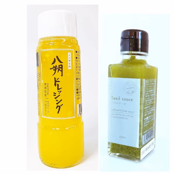 自慢の「八朔ドレッシング」と「バジルソース」をセットにしました。