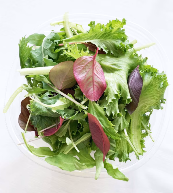 クリスピーレタスを主役に彩り豊かなベビーリーフやハーブを混ぜ合わせてサラダパッケージにしております。