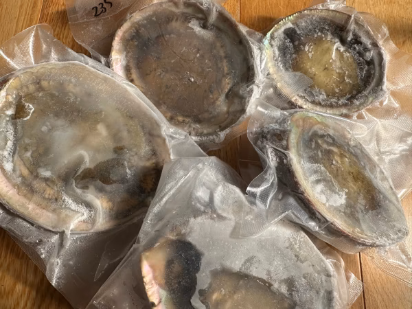 アワビは生の状態で計量しています、冷凍の際に水が切れますと目減りますのでご了承ください