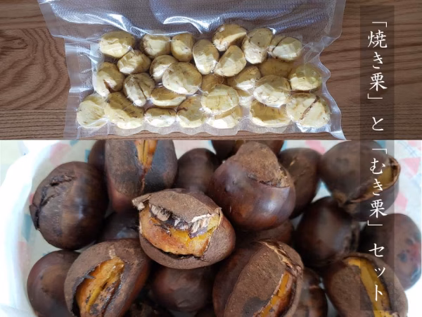 「焼き栗」「むき栗」ともに、当園で栽培している自然栽培の栗を使用し、焼き栗、剥き真空パックに詰めました。