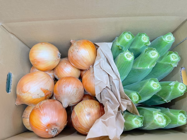 - たまねぎはネットで保管もしくは冷蔵庫で保管してください。ホワイトコーンは新聞紙などにくるみ冷蔵庫で保管してください。