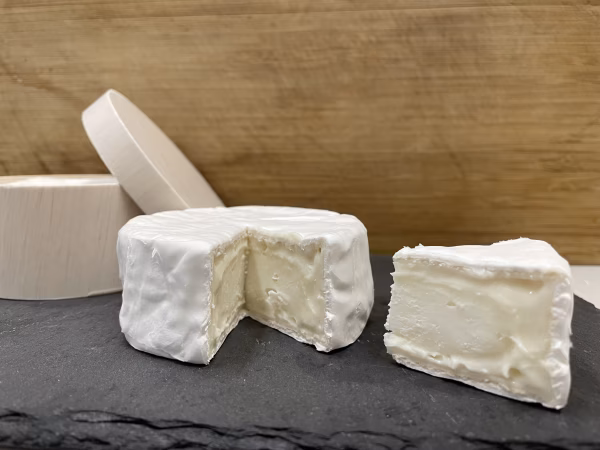 佐世保カマンベール雪月は、牧場の朝1番の搾りたての生乳から生まれる、上品で優しいミルクの風味と、熟成が進むにつれ、生クリームのようななめらかさを感じるカマンベールチーズです。