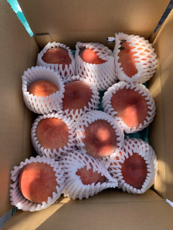 - 2キロ箱、3キロ箱とも説明に記載があります個数は桃木の 中から下になっているものです。木の上に残っている桃は 太陽系をたくさん浴びて、大きくなっています!高級桃となってきており、2キロ箱で6個で箱いっぱいになります。 お値段は上げずにこのままのお値段にて、サービスいたします