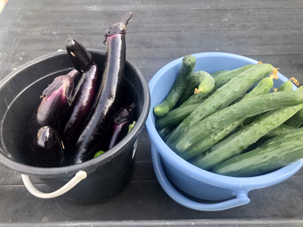 イチゴのハウスの片隅でいろいろな野菜を育てています。量がないので少しづつですが新鮮な野菜をお楽しみください。