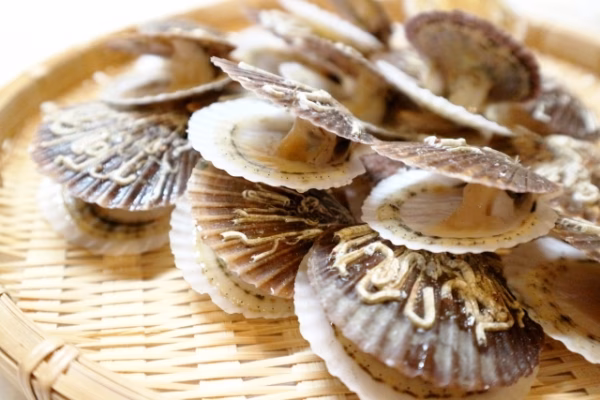 北海道宗谷産の天然殻付き帆立の稚貝です。