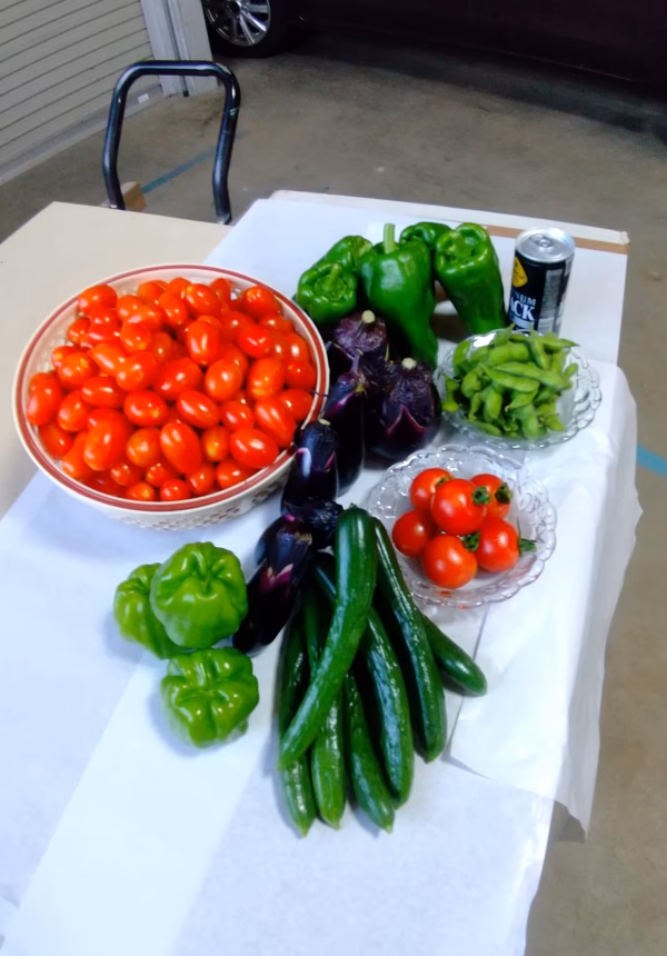 ▼夏真っ盛り✨☀️✨ギラギラと眩しい太陽の下、主役を争う野菜達。イタリアン・トマトもしっかり色づいて来ました。今年はジャンボピーマンも仲間に入れ、バラエティーに詰め込んでお届けします。