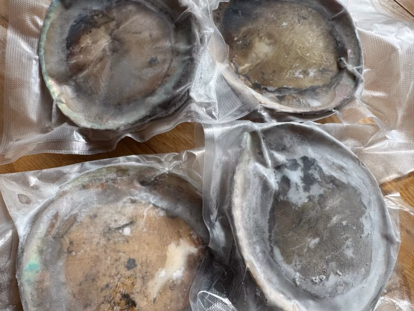 漁場は水深のある深い場所や、波の荒い場所です、その為にアワビを獲る際に傷を付けてしまう事があります、殆どは自家消費するのですが、その訳ありの傷アワビを梱包して-60℃の超低温で急速冷凍しました!!未だ活きている内に急速冷凍していますので鮮度は良いです!