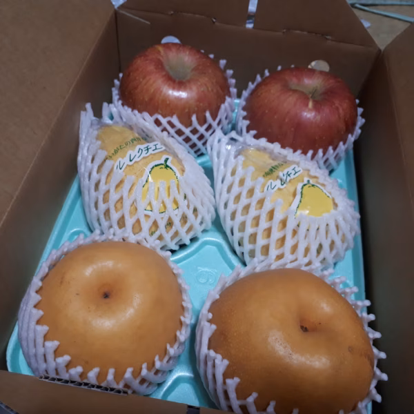 - リンゴと新興は湿度を保った状態で冷暗所。ルレクチエは常温の部屋で追熟