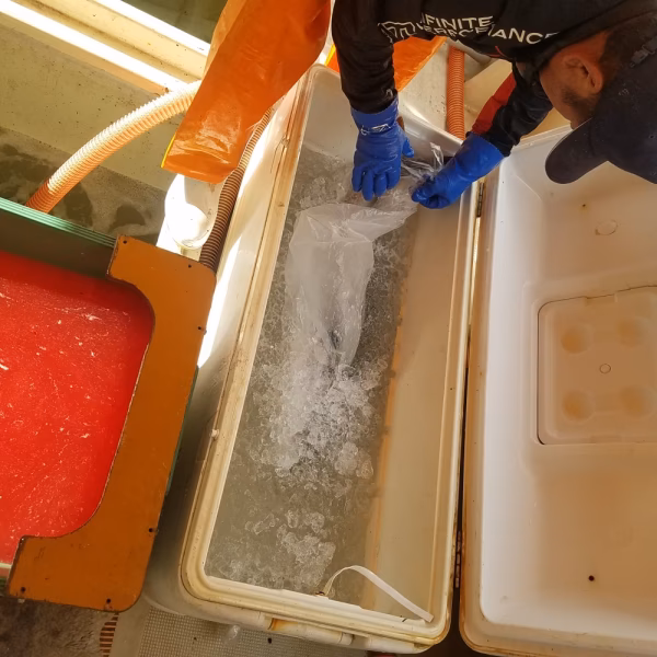 ・活〆後は窒素ガスを充満させた滅菌海水(0~5℃)で30分以上冷却を施し、酸素を奪うことで匂いの元となる脂や血液の酸化の進行を抑制させています。