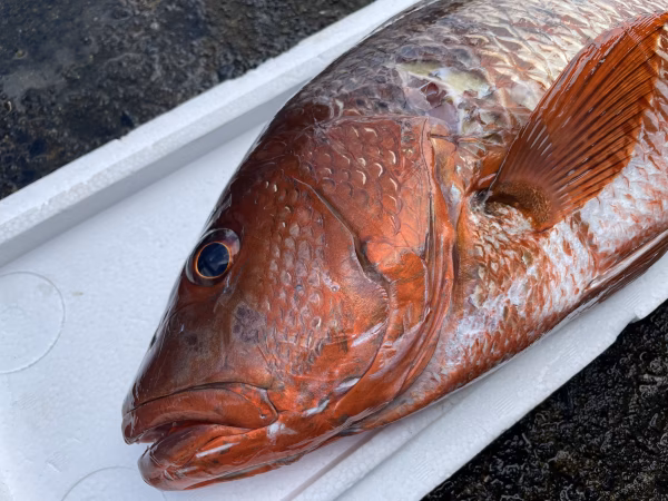 素潜りでの魚突きで捕獲しています。常に頭、エラ付近を狙うように意識していますが、体に撃つ事もあります。