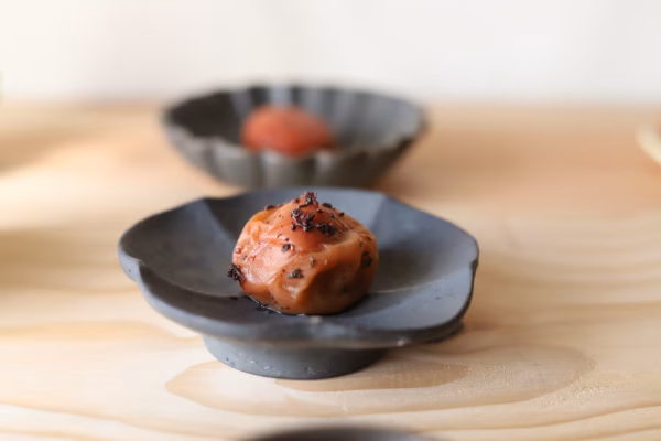 天日干しをした梅を塩分を抜いて、味付けにしております。